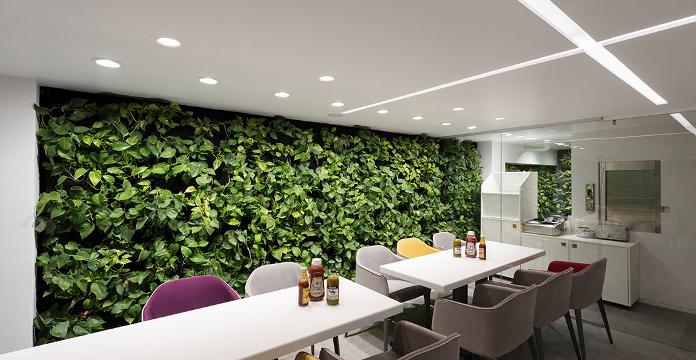 چراغ های Valman از محصولات Fenos با پخش نور نامتقارن ( والواشر ) نور یکنواخت مناسبی روی سطوح عمودی و پوشش گیاهی تامین کردهاند. نوارهای LED سری Beno نور خطی را در شکافها تامین کرده و پروژکتورهای سری Silva Maxi برای نورپردازی نمای ورودی ساختمان استفاده شدهاند.