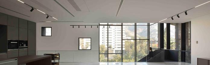 یک خانه مسکونی مدرن، لوکس و چند طبقهای که بیشتر با چراغهای مدرن و پیشرفته از محصولات ما تجهیز شده است. خانواده چراغهای بدون خیرگی دارکلانس، در اتاق نشیمن، فضایی آرام و مناسب برای استراحت و تماشای فیلم ایجاد میکنند. همچنین، پروفیلهای کراب به همراه چراغهای سیرا 1616 و فلکا مینی به شیوهای مدرن و جذاب در این خانه نصب شدهاند.